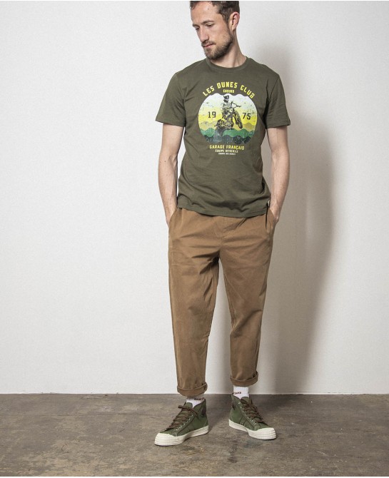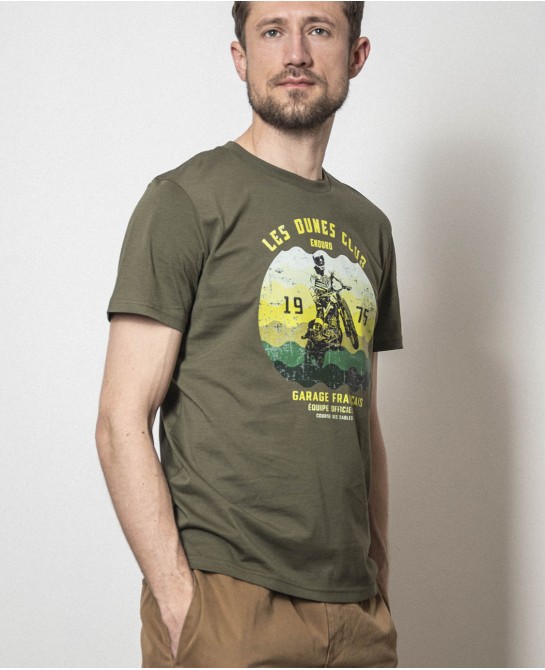 une moto des 70s fend les dunes dans une illustration grand format. Une pièce à porter avec fierté, que vous ayez fini la course… ou juste l'apéro.